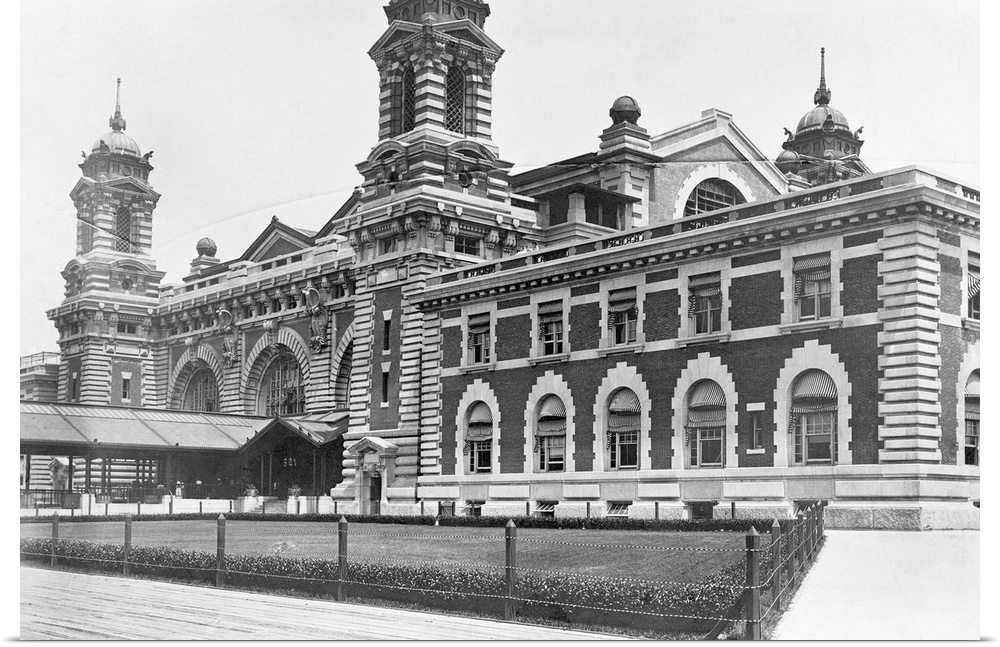<p>Partial view of the main building on Ellis Island, the immigration station in New York Harbor, c1920.</p>