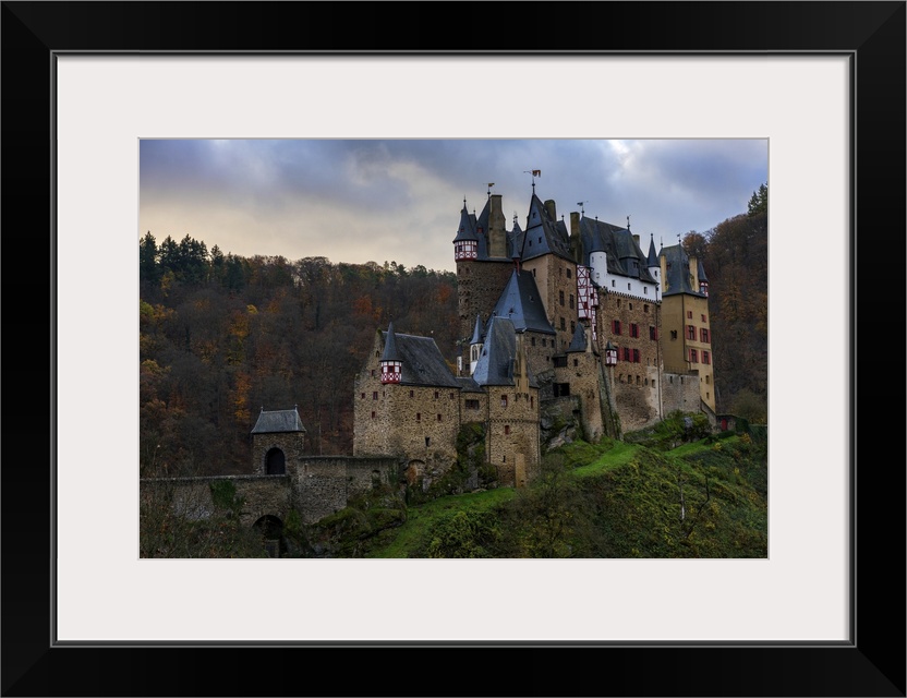 <p>Eltz medieval historic castle in an autumn landscape with trees at sunrise, Wierschem, Rhineland-Palatinate, Germany, Europe</p>