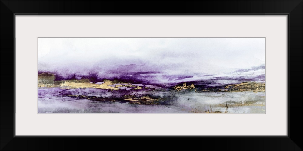 <p>Abstract painting in ultraviolet shades with complementary gold accents.</p>