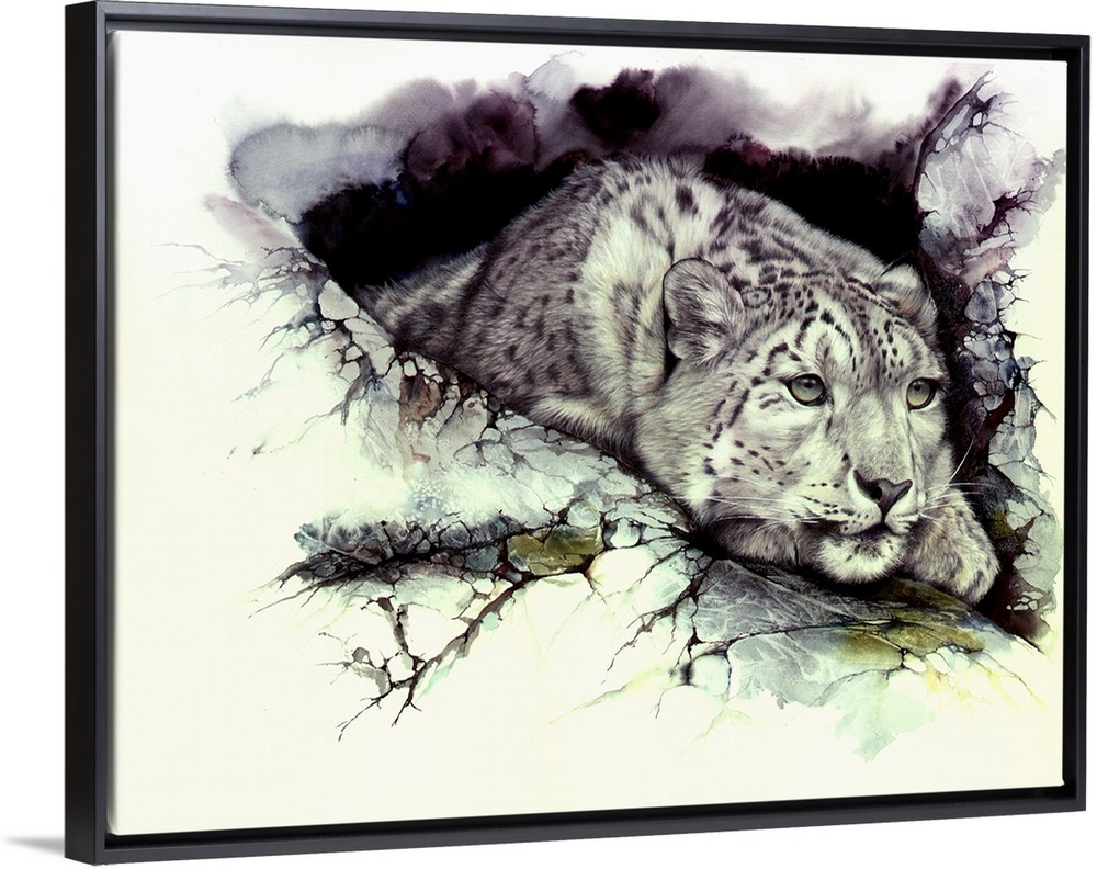 <p>A snow Leopard surveys the outlook from a safe hide away. Originally created using watercolor and colored pencils.</p>