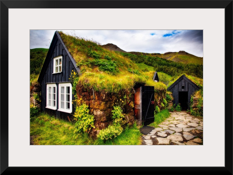 <p>Side Entrance View of an Icelandic Turfhouse, Skoga, Iceland</p>