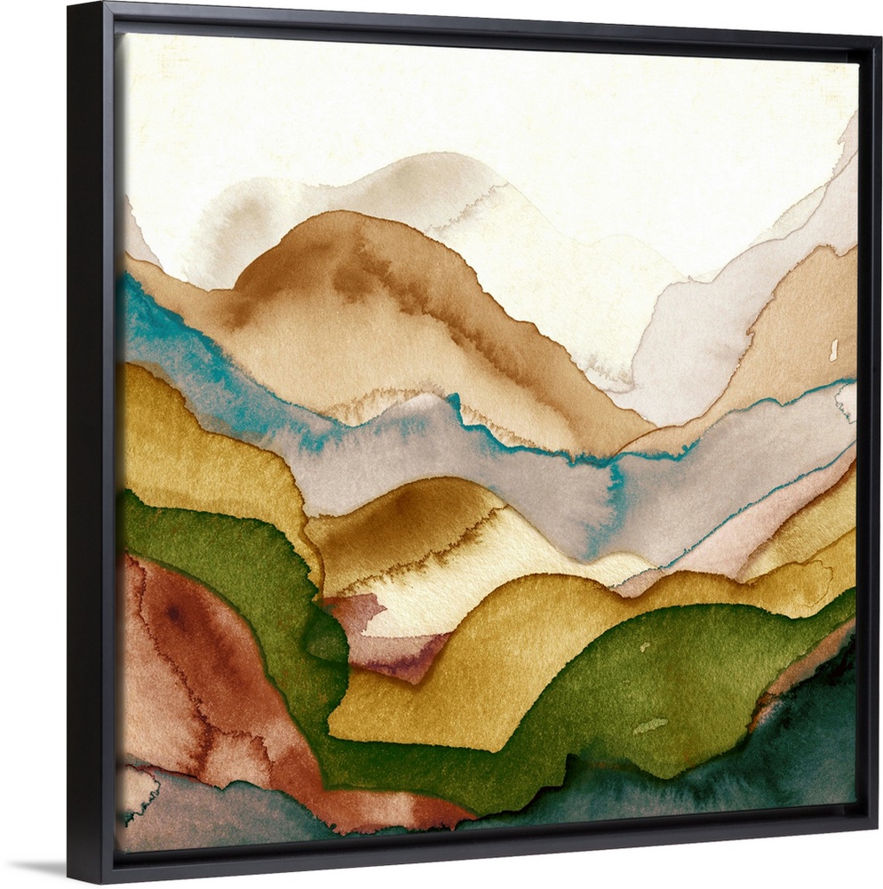 <p>Contemporary abstract watercolor painting of different layers overlapping resembling a landscape.</p>