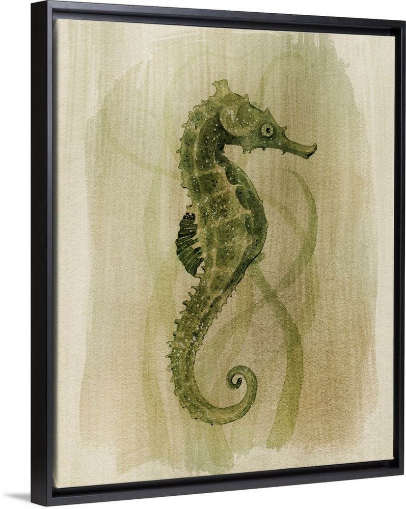 Art Coastal Bathroom Art Coastal Bathroom Decorative Art Green Wall Art Painting Grace Popp Watercolor Wildlife Marine Life Seahorse