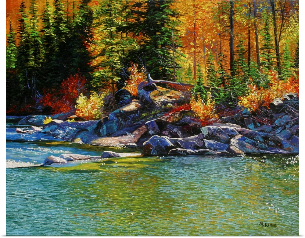 Art Contemporary Art Four Seasons Fall Andrew Kiss Landscapes River, Creek and Stream Trees Forest Painting
