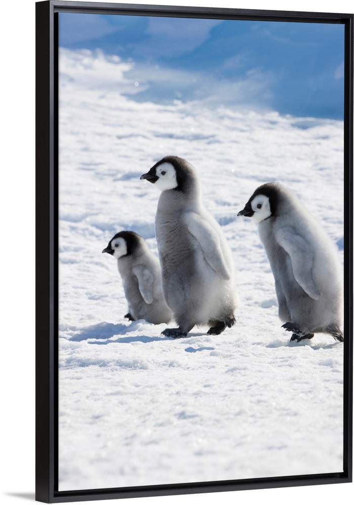 <p>Emperor Penguin (Aptenodytes forsteri) chicks on ice, Snow Hill Island, Antarctica.</p>