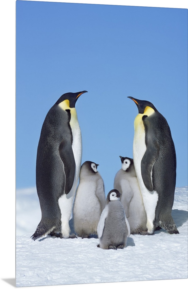 <p>Emperor penguin parents with chicks. Antarctica, Antarctic Peninsula, Snowhill Island. Antarctica, Antarctica.</p>