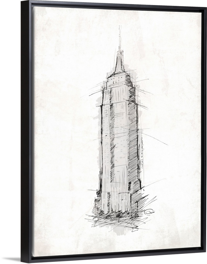 <p>Sketch of the Empire State Building against a textured background.</p>