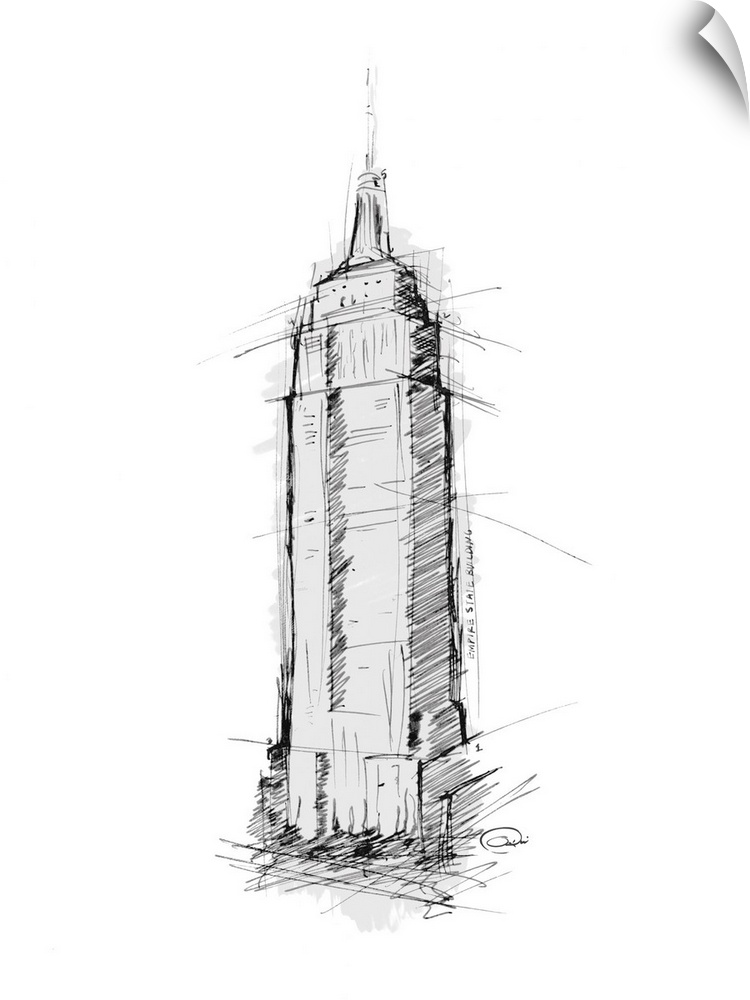 <p>Sketch of the Empire State Building against a flat white background.</p>