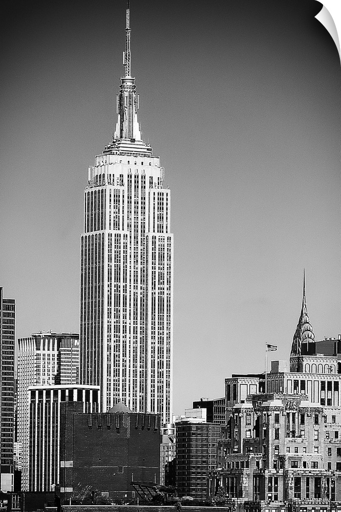 <p>Black and white photograph of New York City. With the Empire State building prominently standing tall.</p>