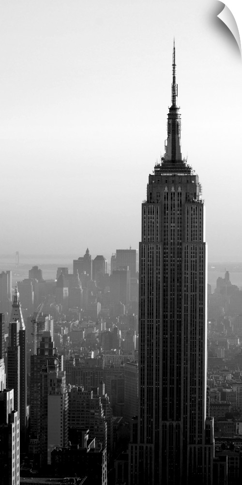 <p>A long vertical black and white image of the Empire States Building in New York City.</p>