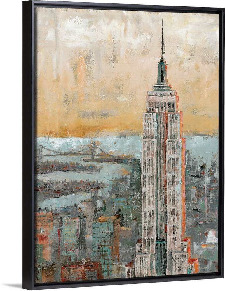 <p>Contemporary painting of the Empire State Building in New York, in subdue tones, with a distressed appearance.</p>