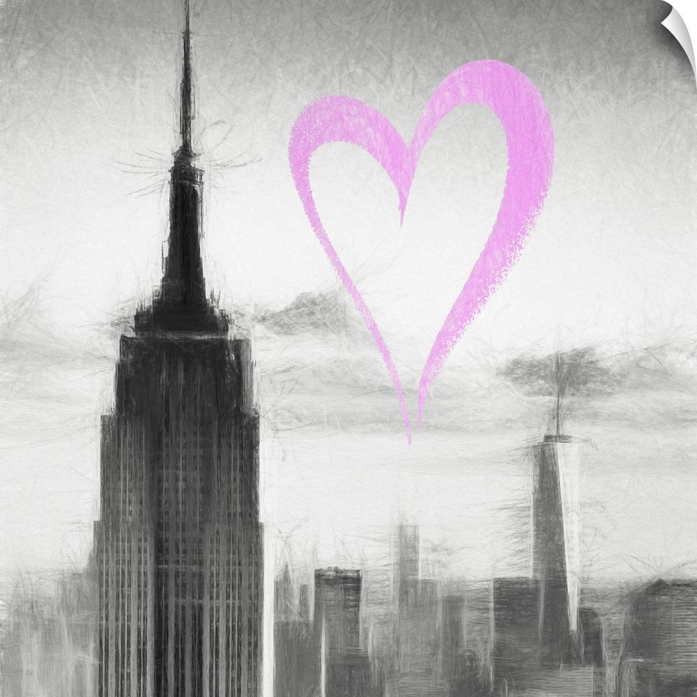 <p>Fusing of oil painting textures and techniques with a digital black and white photograph of the Empire State Building with a big, pink heart. From the Luv Collection.</p>