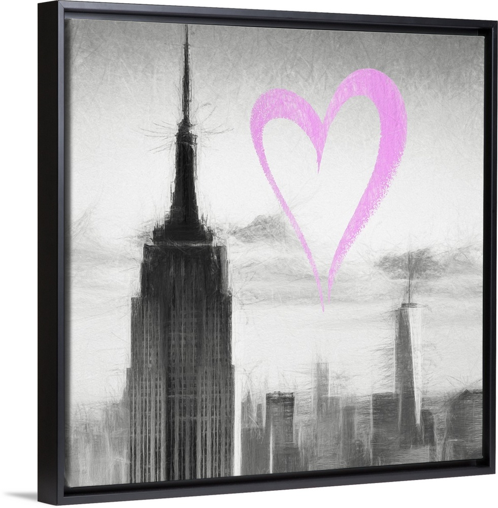 <p>Fusing of oil painting textures and techniques with a digital black and white photograph of the Empire State Building with a big, pink heart. From the Luv Collection.</p>
