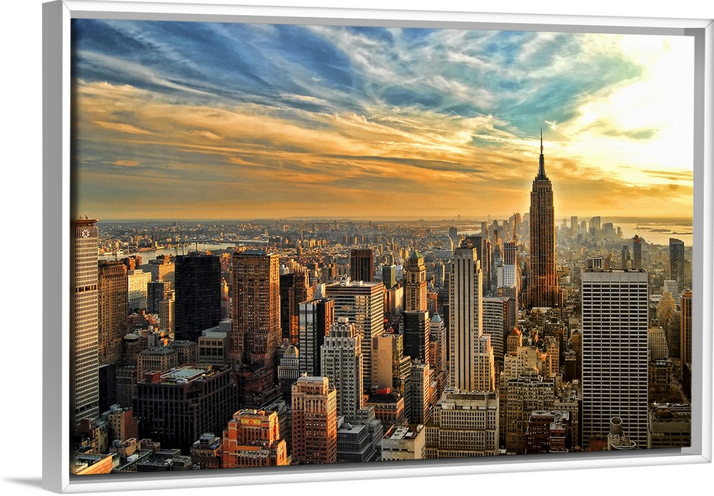 <p>HDR image overlooking southern half of Manhattan, New York City, with Empire State Building.</p>