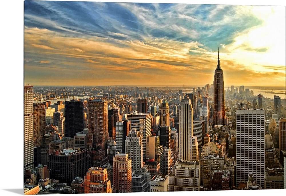 <p>HDR image overlooking southern half of Manhattan, New York City, with Empire State Building.</p>