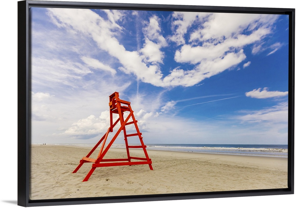 <p>Empty lifeguard chair on empty Jacksonville beach during closing hours during Covid-19 pandemic, Florida, United States of America, North America</p>