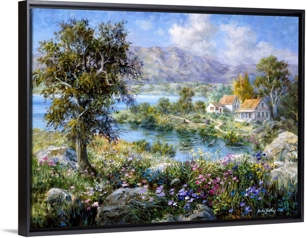 <p>Nicky Boehme imagines a world full of light and goodness in paintings that capture idyllic scenes of the laid-back life. Boehme is the consummate artist who painted as a young child and throughout her storied professional life. The dramatic interplay of light, color and mood create soothing scenery for wall art that will complement the atmosphere in quiet spaces such as bedrooms, reading nooks or dens. The world through the eyes and skilled brush strokes of Nicky Boehme glitters with romanticism and realism. You can almost taste the snow flurries covering a winter scene or hear the brook gurgling past a remote homestead.</p>