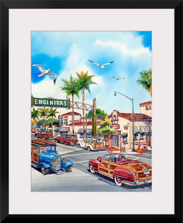 Art Decorative Art Bill Drysdale Painting California Transportation Car Classic and Vintage Cars Watercolor