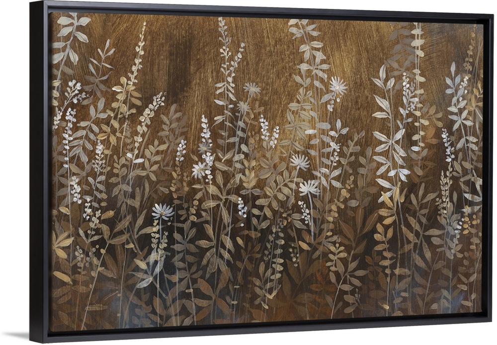 <p>A field full of wild flowers and plants in muted brown earth tones.</p>