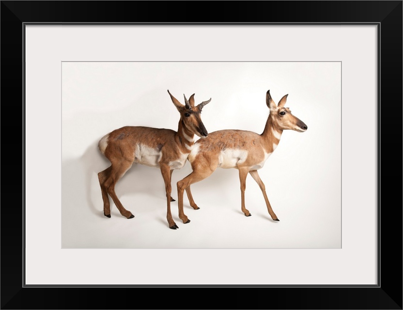 <p>Endangered peninsula pronghorn antelopes, Antilocapra Americana peninsularis, at the Los Angeles Zoo.</p>