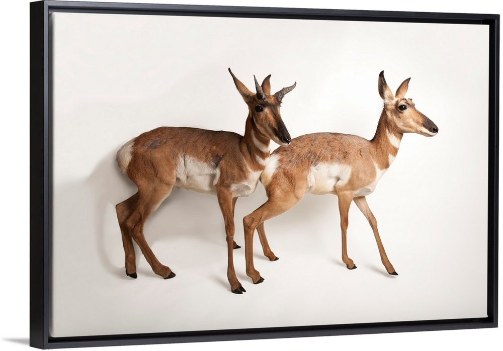 <p>Endangered peninsula pronghorn antelopes, Antilocapra Americana peninsularis, at the Los Angeles Zoo.</p>