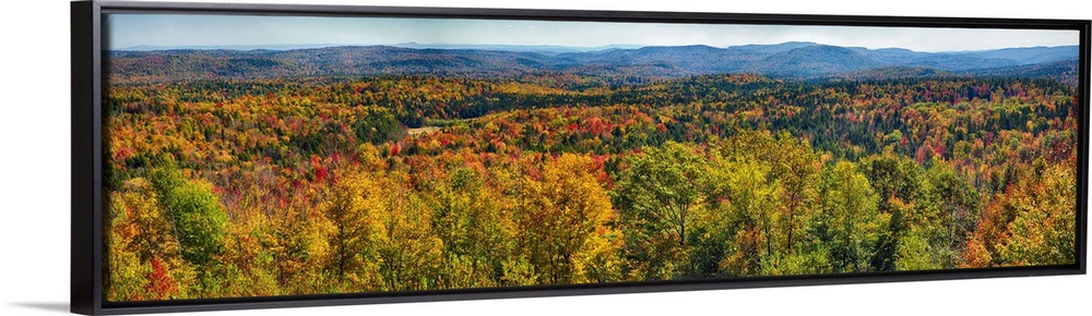 <p>Panoramic view of a virtually endless forest turning autumn colors in New England.</p>