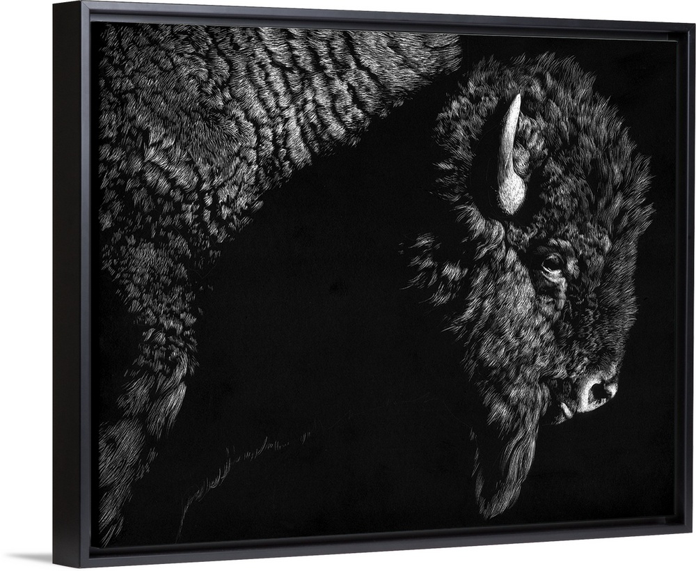 Art Black and White Wall Art Julie Chapman Contemporary Art Wildlife Drawing Wildlife Bison and Buffalo