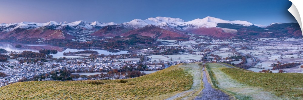 <p>UK, England, Cumbria, Lake District, footpath overlooking Keswick from Latrigg.</p>