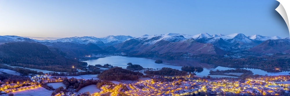 <p>UK, England, Cumbria, Lake District, Keswick and Derwentwater at night.</p>
