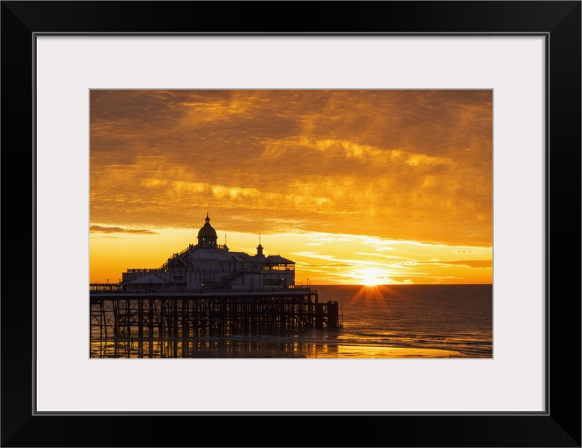 <p>England, East Sussex, Eastbourne, Eastbourne Beach and Pier with English Channel at Dawn</p>