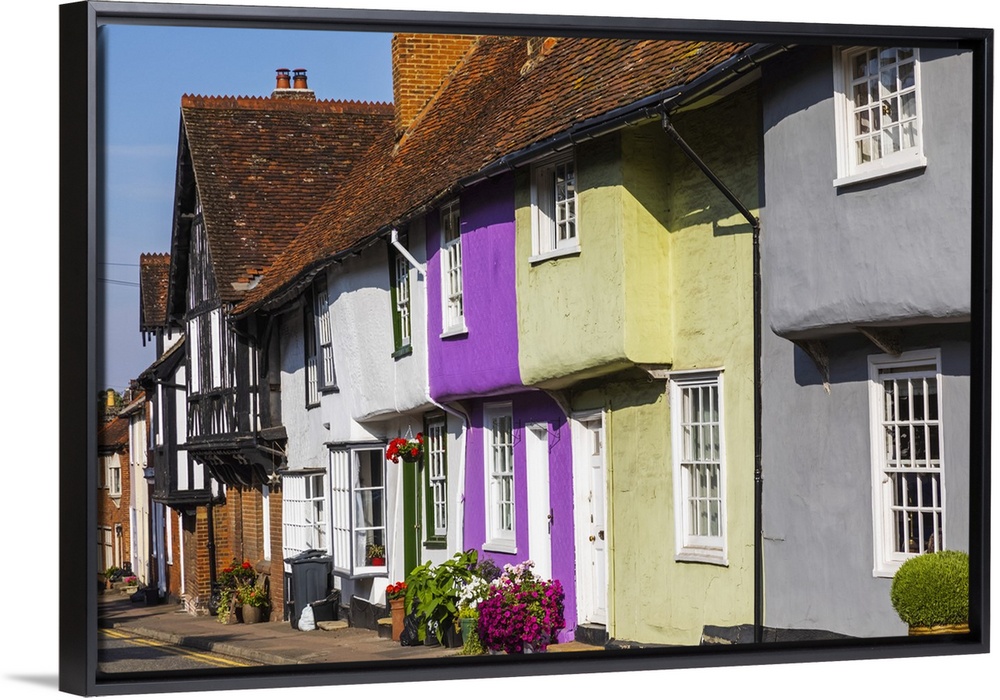 <p>England, Essex, Saffron Walden, Castle Street, Colourful Houses</p>