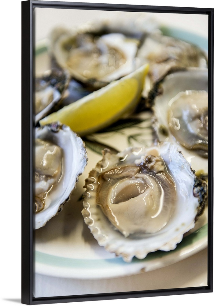 <p>UK, England, Kent, Whitstable, Oysters with lemon, Wheelers Oyster Bar.</p>