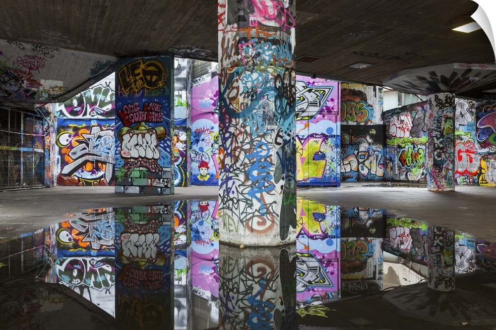 <p>UK, England, London, London Borough of Southwark, South Bank, Great Britain, Graffiti beneath the Royal Festival Hall.</p>