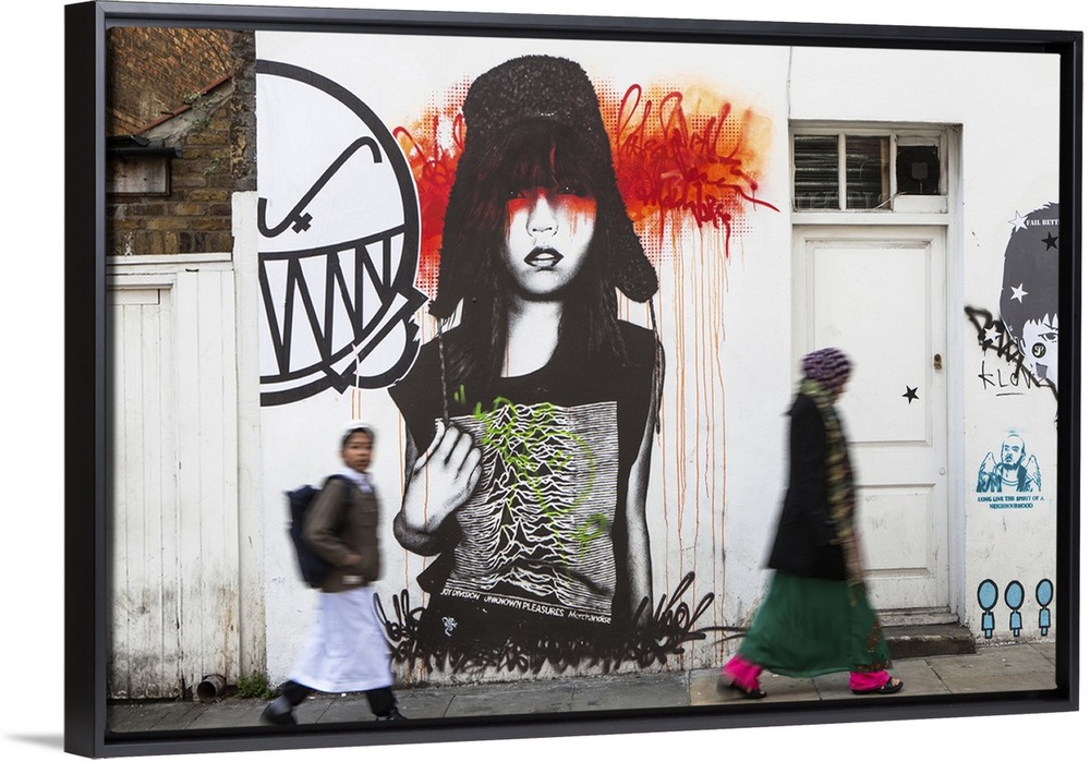 <p>UK, England, London, London Borough of Tower Hamlets, Brick Lane, Great Britain, Urban graffiti with pedestrians.</p>