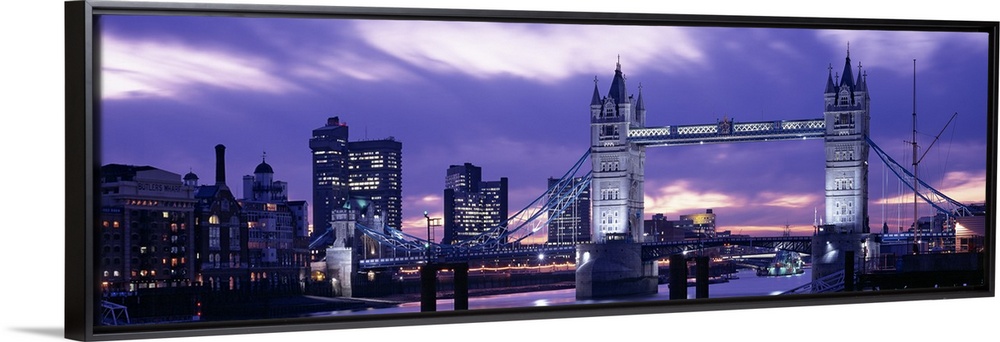 <p>Spectacular panoramic view of the Tower Bridge, the River Thames and the skyline of London at night.</p>