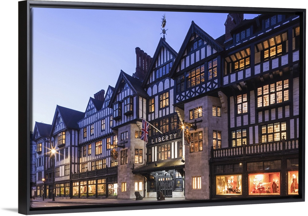<p>England, London, West End, Great Marlborough Street, Liberty's Department Store at Night</p>