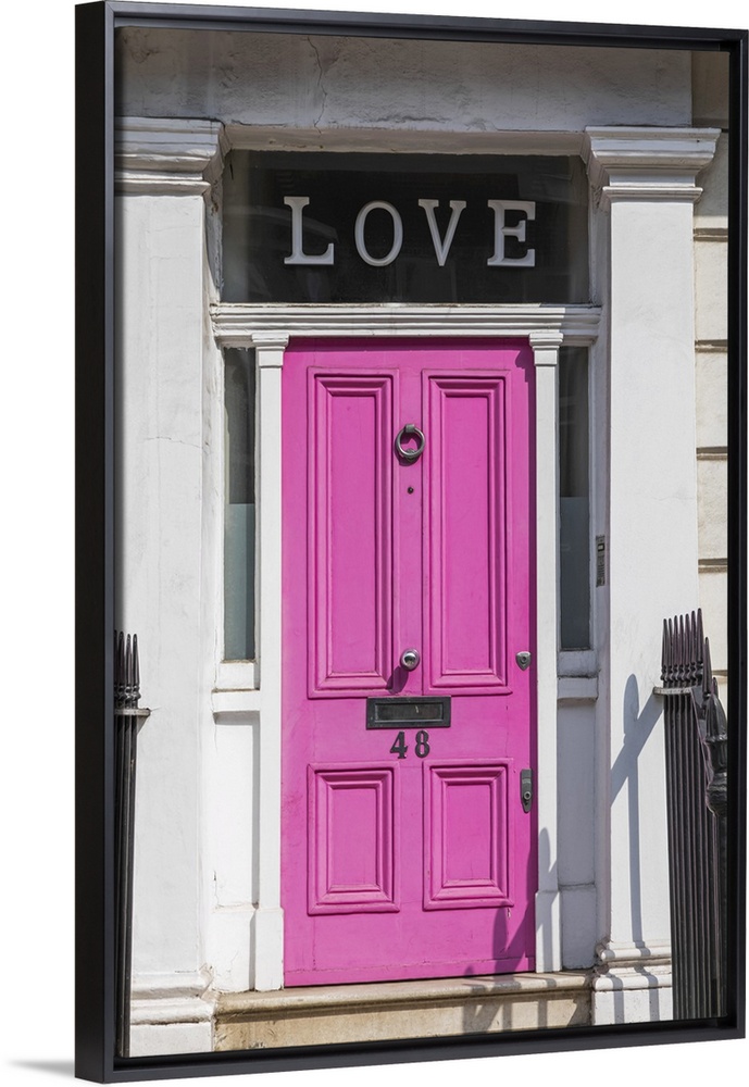 <p>England, London, Westminster, Kensington and Chelsea, Pink Door with Love Sign</p>