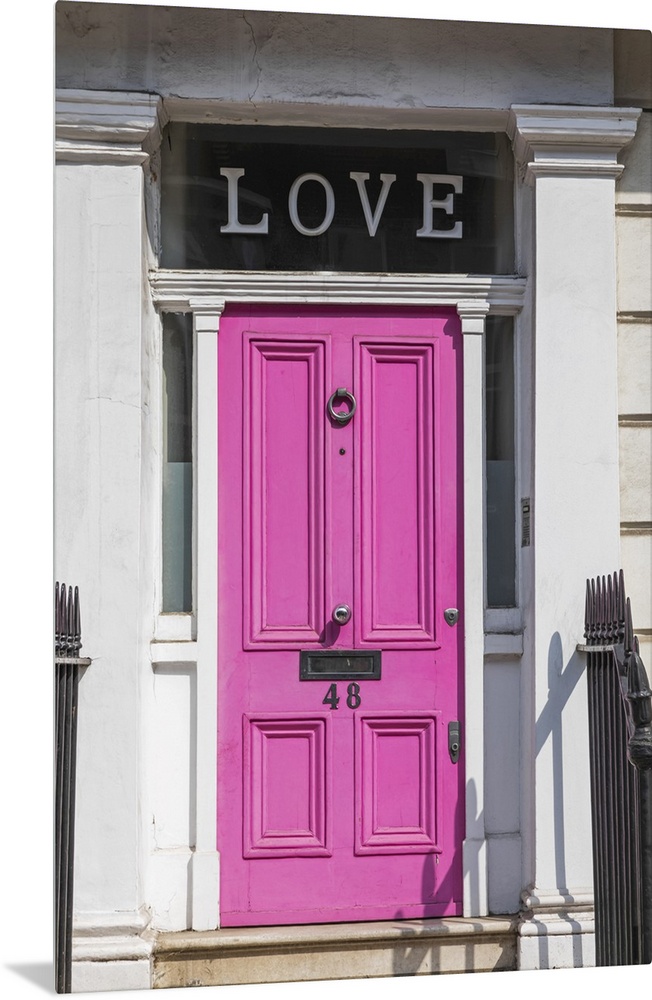 <p>England, London, Westminster, Kensington and Chelsea, Pink Door with Love Sign</p>