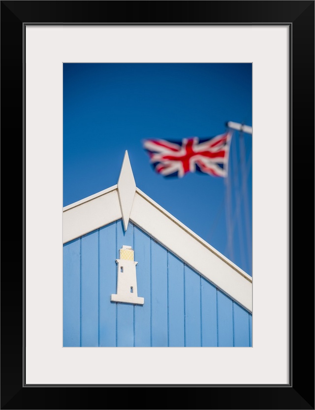 <p>UK, England, Suffolk, Southwold, Promenade, Beach Hut and Union Flag.</p>