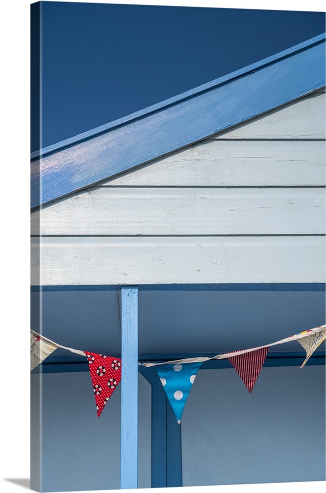 <p>UK, England, Suffolk, Southwold, Promenade, Bunting decorating a Beach Hut.</p>