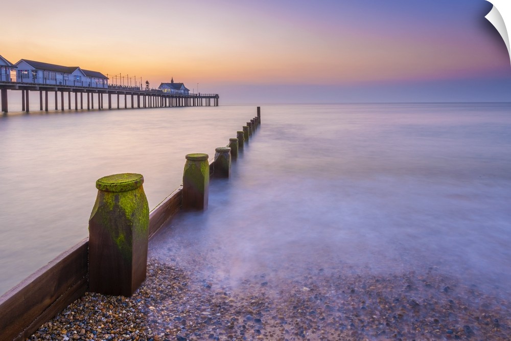 <p>UK, England, Suffolk, Southwold, Southwold Pier at dawn.</p>