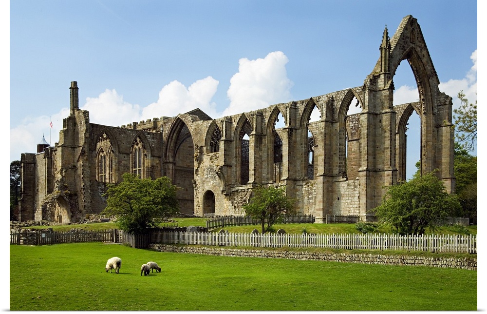 <p>United Kingdom, UK, England, Yorkshire, Yorkshire Dales National Park, Bolton Abbey, old ruin of a church</p>