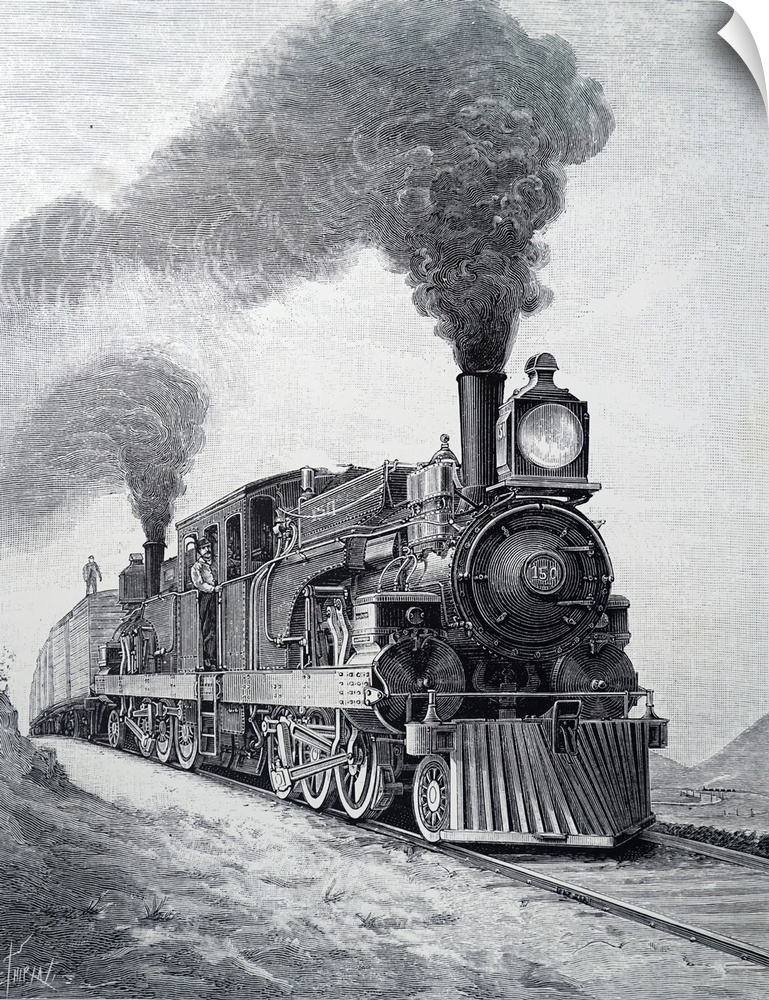 <p>Engraving depicting a locomotive built for the Mexican Central Railroad. 19th century.</p>