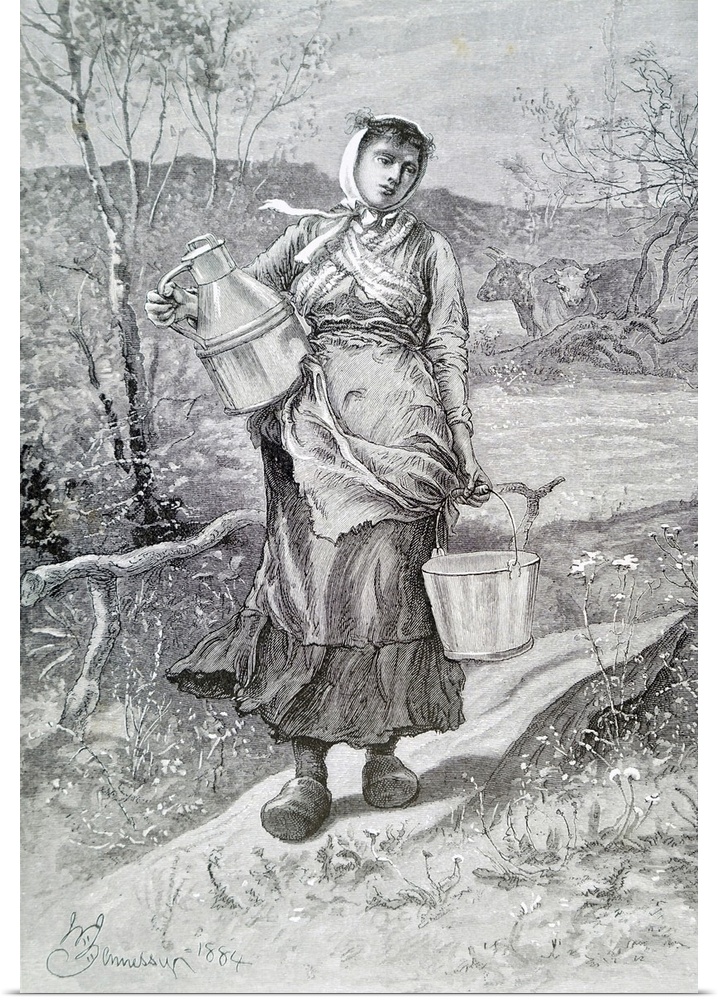 <p>Engraving depicting a milkmaid in Normandy. Dated 19th Century.</p>