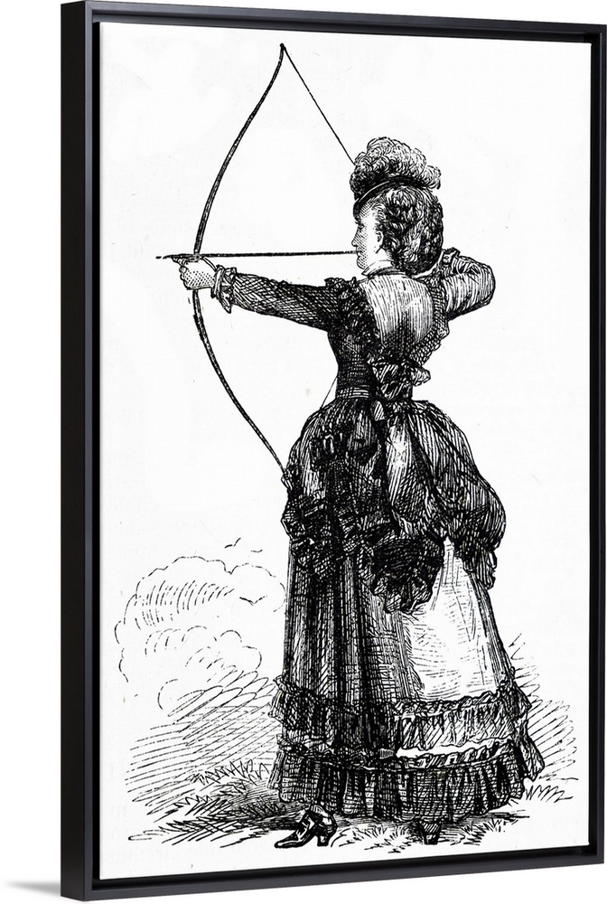 <p>Engraving depicting a young lady practising her archery skills. Dated 19th century.</p>