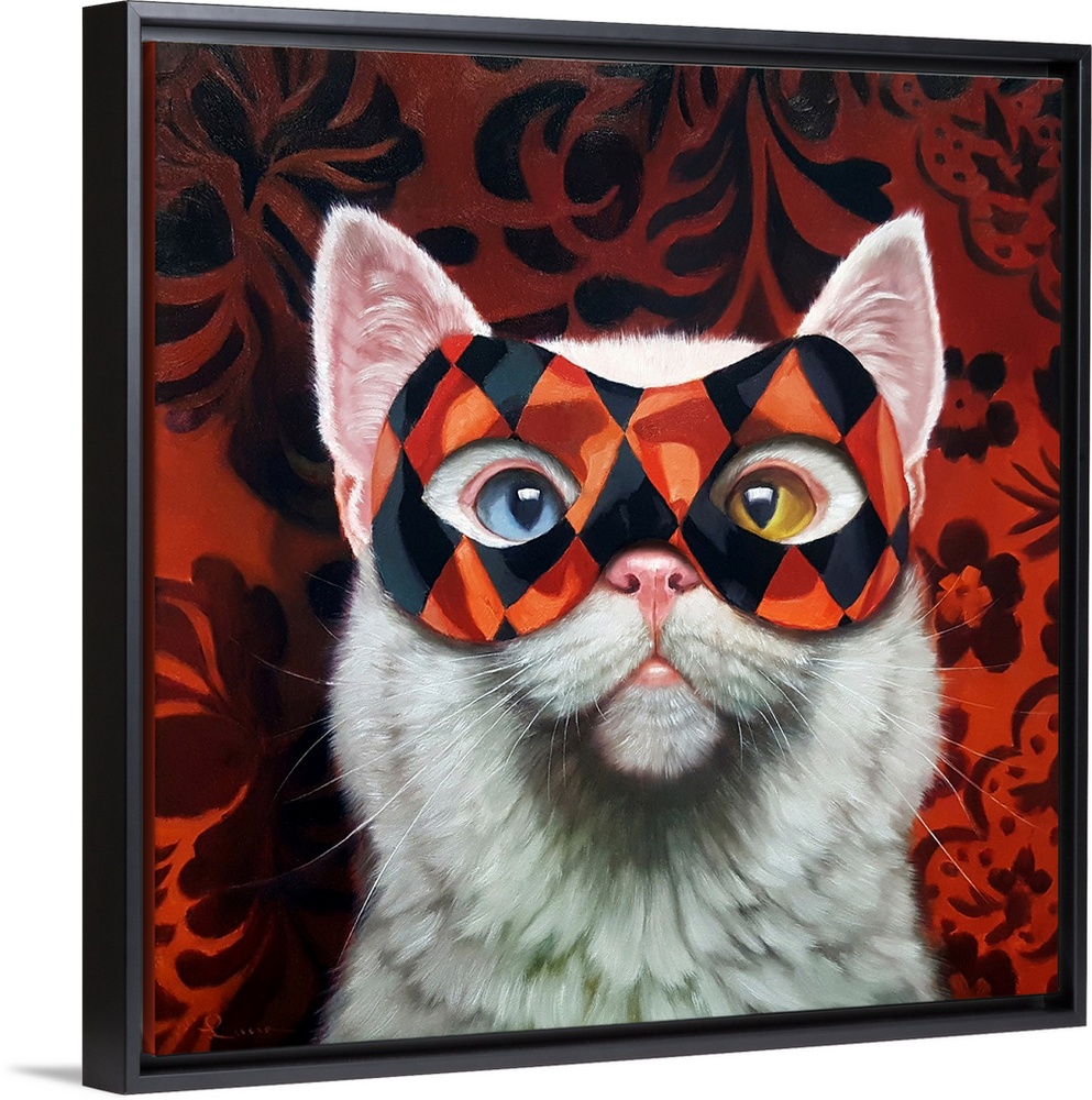 Art Lucia Heffernan Painting Red Wall Art Surrealism Wildlife Cat