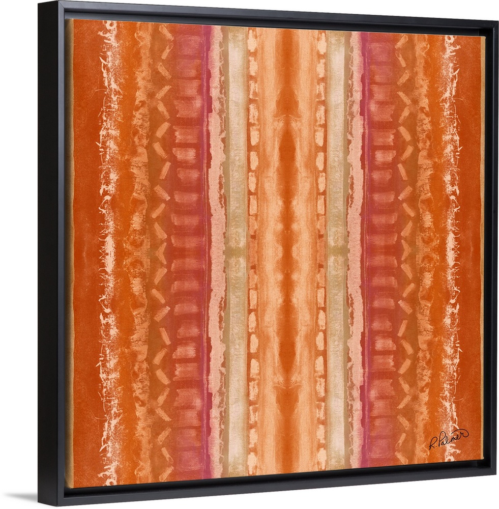 <p>Square contemporary artwork of vertical textured lines in different designs against an orange background.</p>