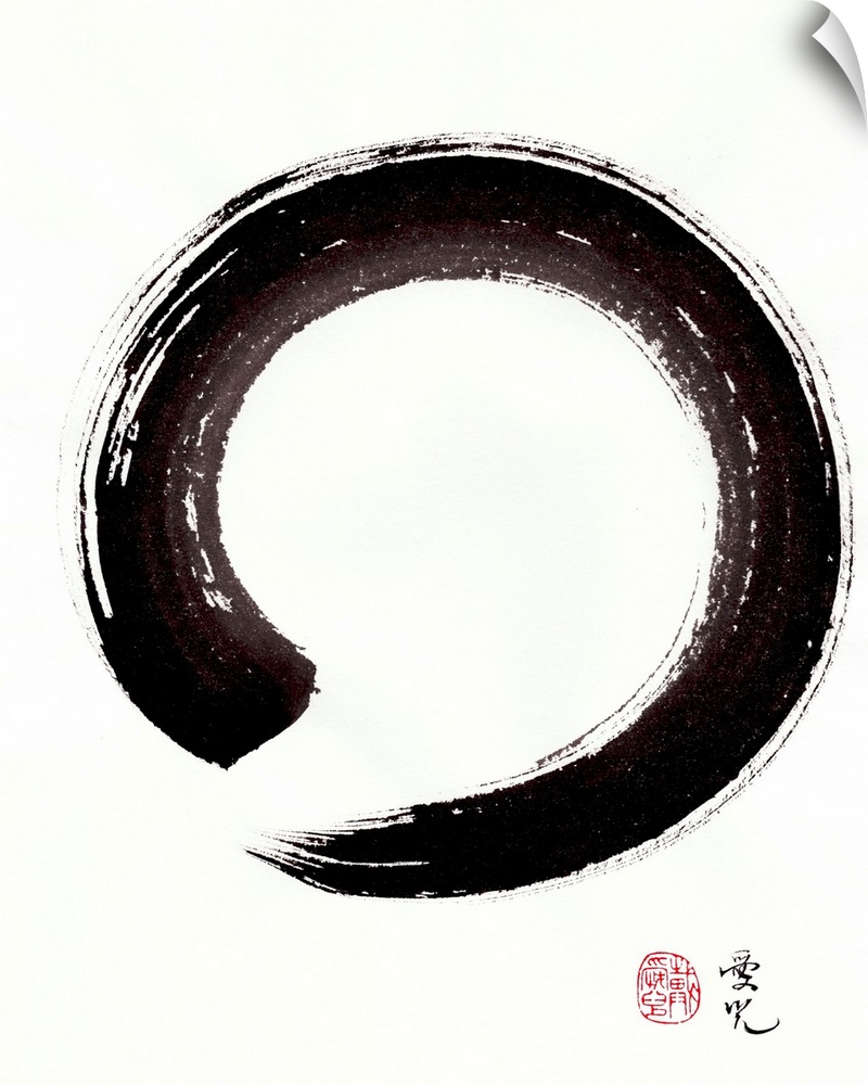 <p>The Enso represents the way of Zen as a circle of form and emptiness, void and fullness. The enso circle is born from emptiness. However its center is full of potency and infinite possibility. Drawn in one fluid, expressive stroke, the enso represents the state of mind of the artist. The black, white and shades of grey embodied in the brushstroke represent my mixed emotions and feelings. As the brush trails off into nothingness, leaving an open circle, it is also the acceptance of imperfection as it is.</p>