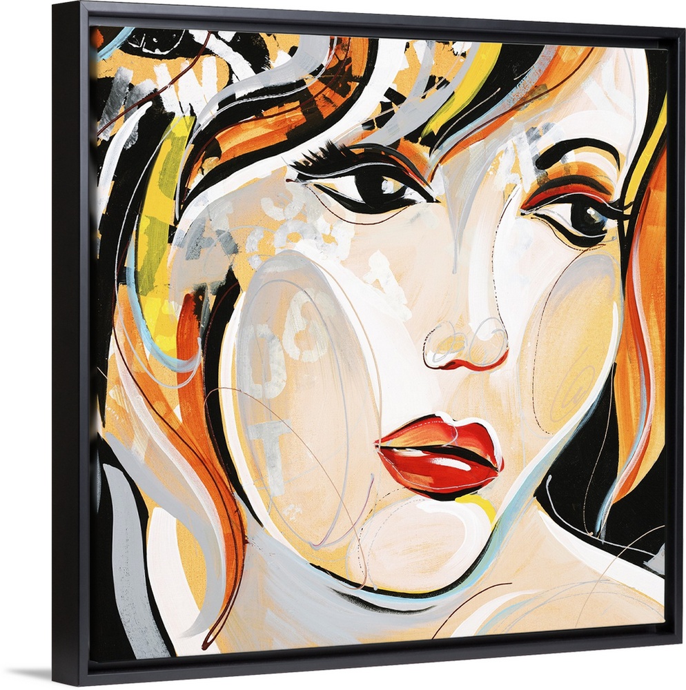 <p>Contemporary painting of a women's face looking solemn.</p>