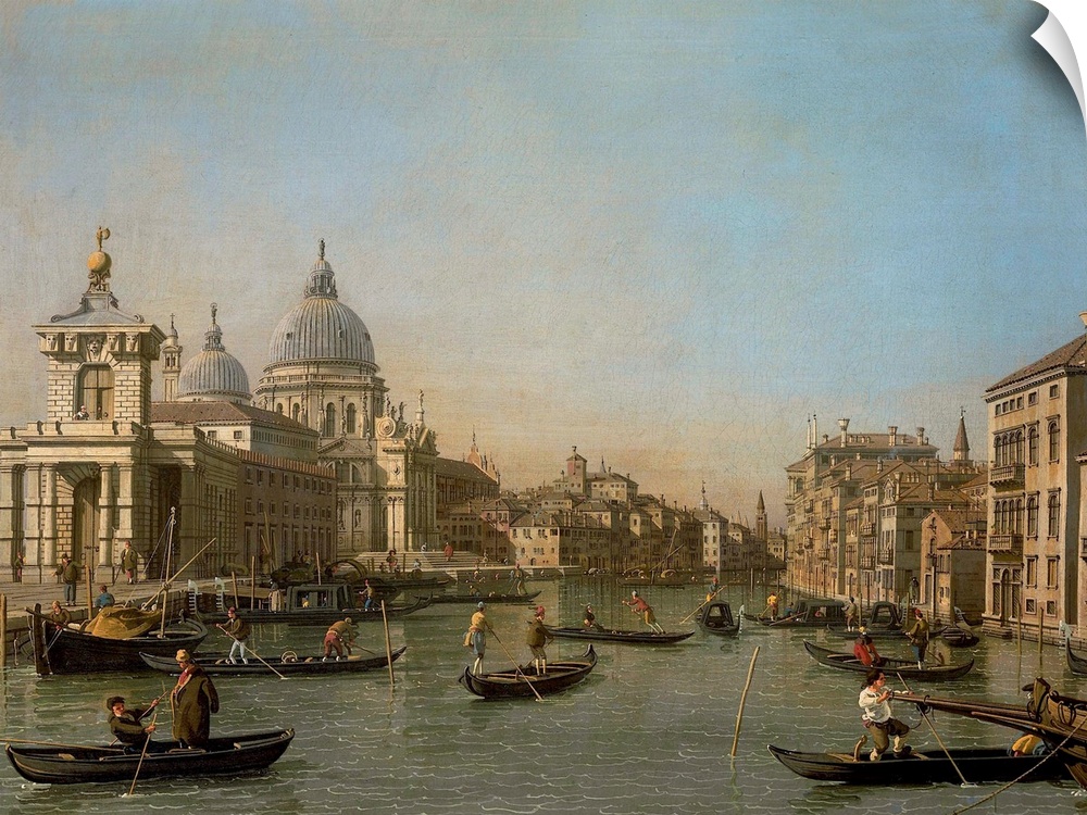 <p>Entrance to the Grand Canal near the Punta della Dogana and Santa Maria della Salute, by Canaletto, 1730-45, Italian painting, oil on canvas</p>